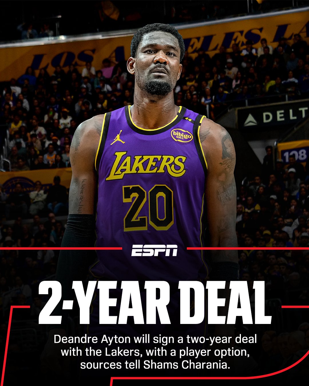来中锋了🟣🟡Shams:艾顿同意加盟湖人 其下赛季总薪资3400万